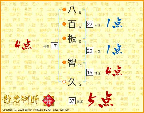 八百板智久さんの総運は37画の5点!