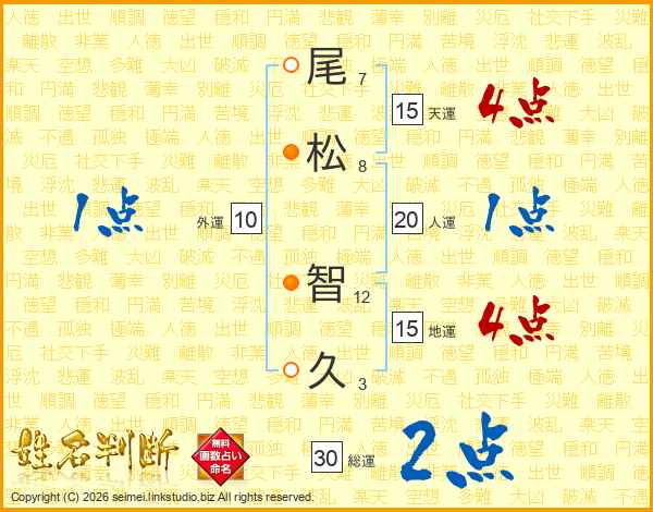 尾松智久さんの総運は30画の2点!