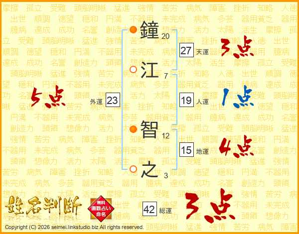 鐘江智之さんの天運は27画の3点!