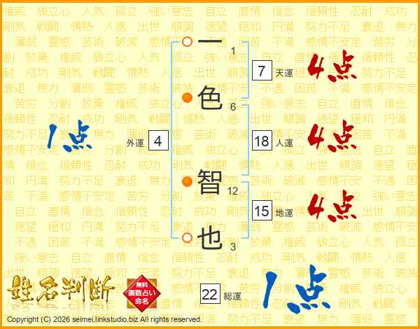 一色智也さんの総運は22画の1点!