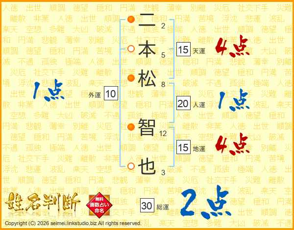二本松智也さんの総運は30画の2点!