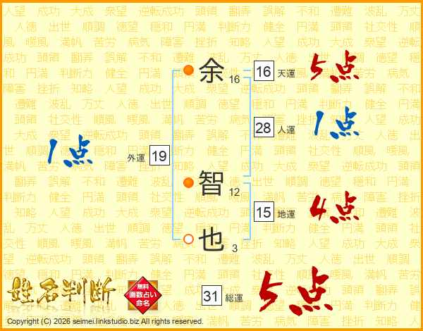 余智也さんの総運は31画の5点!