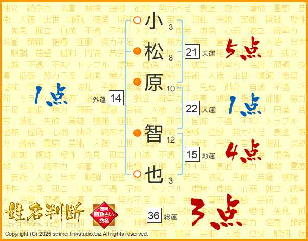 小松原智也さんの天運は21画の5点!