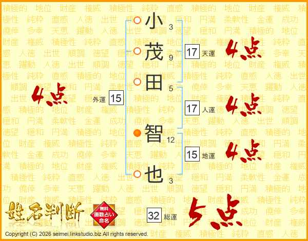 小茂田智也さんの総運は32画の5点!