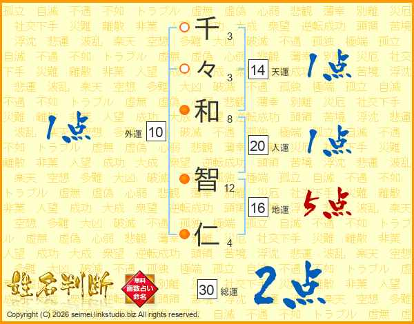 千々和智仁さんの総運は30画の2点!