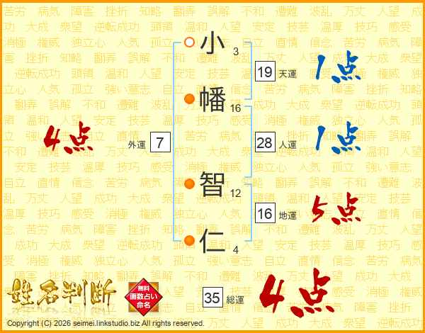小(3画)幡(16画) 智(12画)仁(4画)