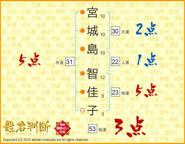 宮城島智佳子さんの外運は31画の5点!