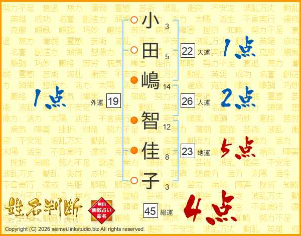 小田嶋智佳子さんの総運は45画の4点!