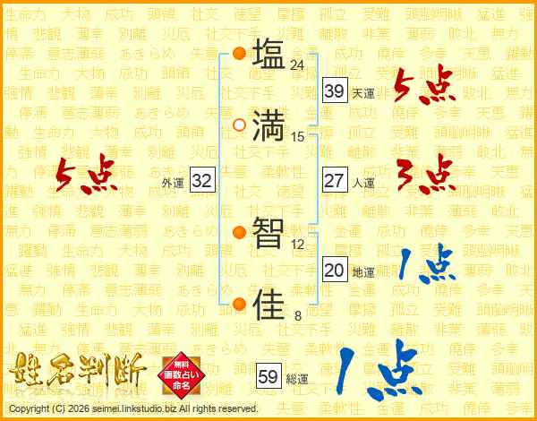 塩(24画)満(15画) 智(12画)佳(8画)