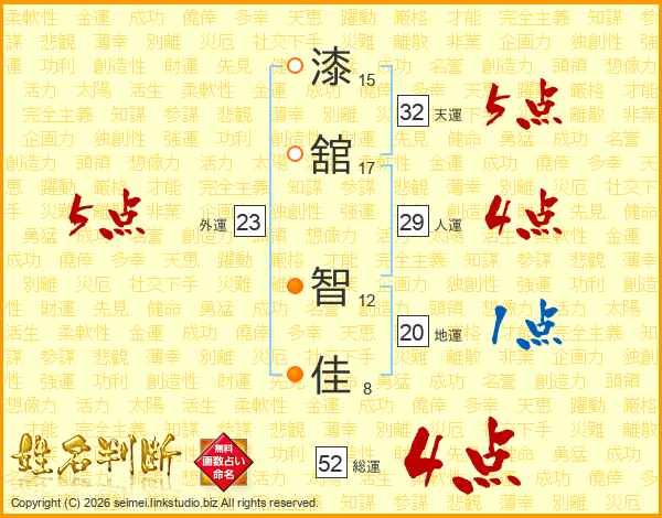 漆舘智佳さんの総運は52画の4点!