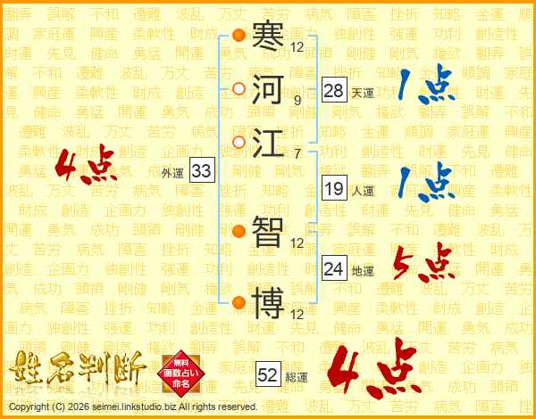 寒(12画)河(9画)江(7画) 智(12画)博(12画)