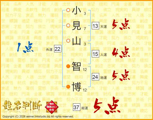 小(3画)見(7画)山(3画) 智(12画)博(12画)
