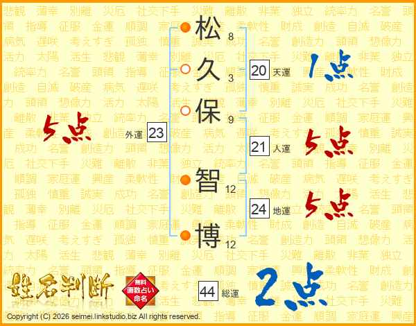 松(8画)久(3画)保(9画) 智(12画)博(12画)