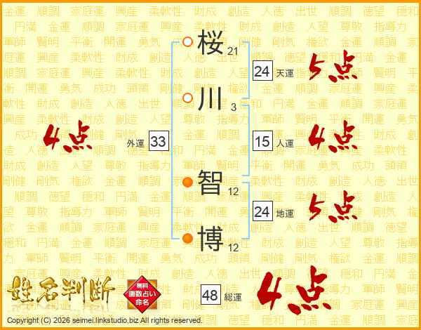 桜川智博さんの総運は48画の4点!