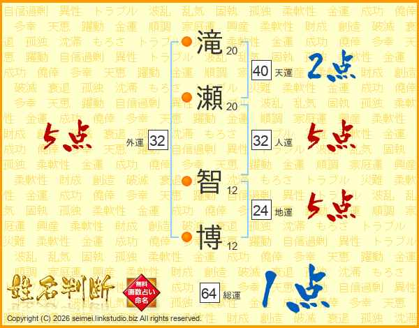 滝(20画)瀬(20画) 智(12画)博(12画)