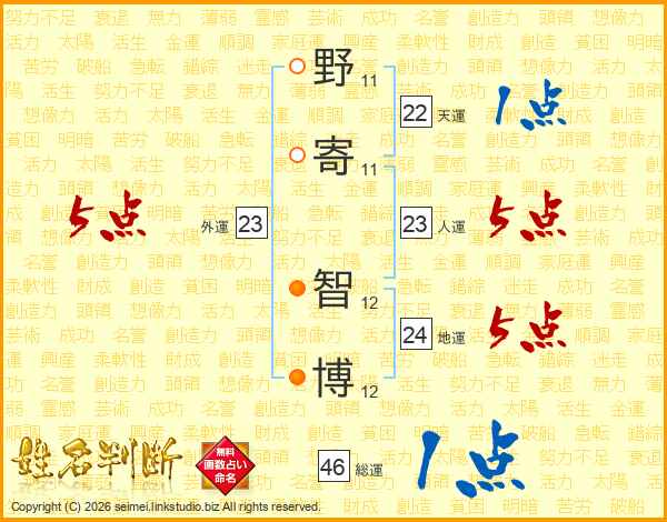 野寄智博さんの人運は23画の5点!