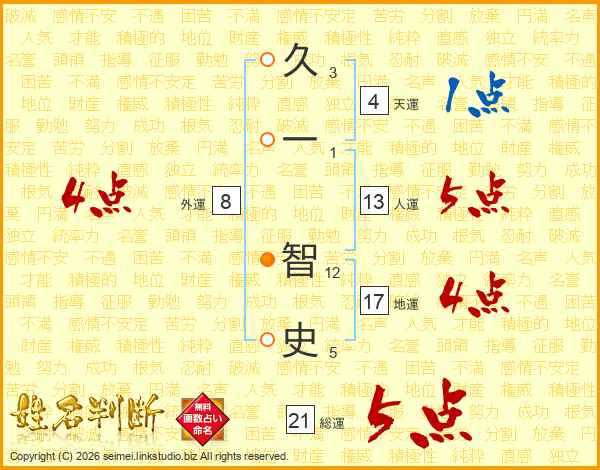 久一智史さんの総運は21画の5点!