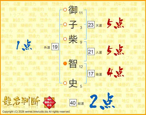 御(11画)子(3画)柴(9画) 智(12画)史(5画)