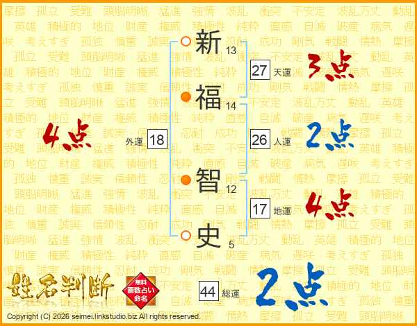 新福智史さんの総運は44画の2点!