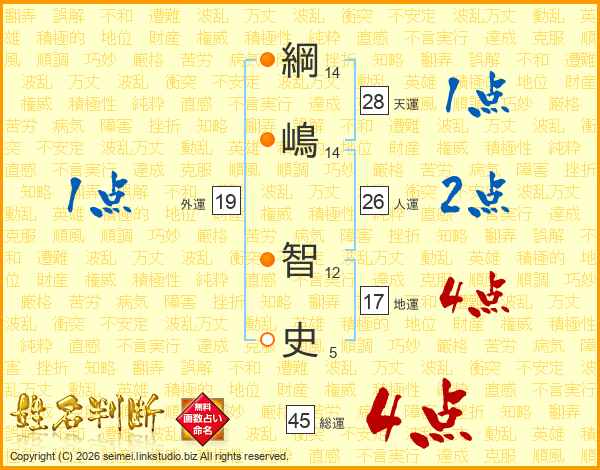 綱嶋智史さんの総運は45画の4点!