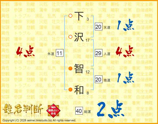 下沢智和さんの人運は29画の4点!