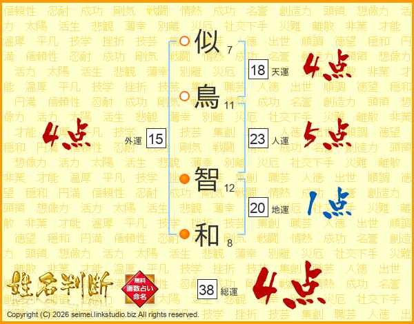 似鳥智和さんの総運は38画の4点!