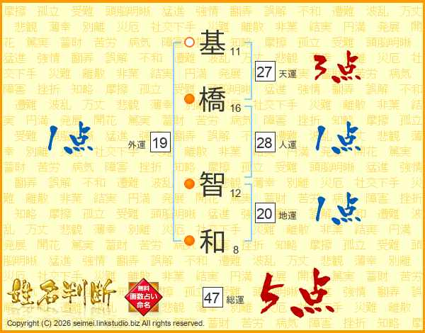 基橋智和さんの総運は47画の5点!