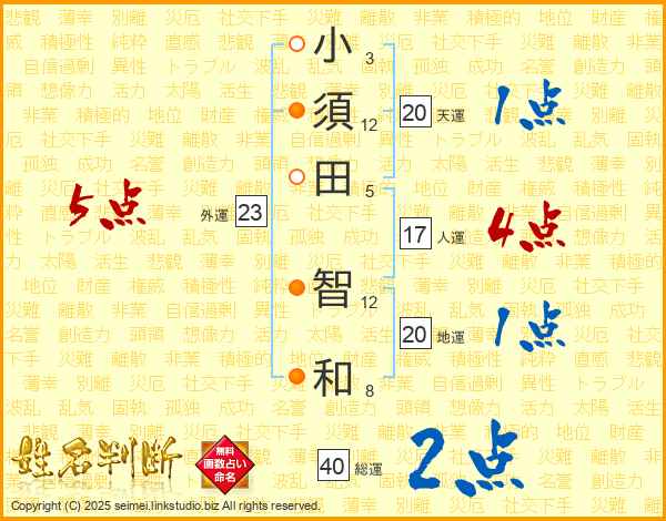 小(3画)須(12画)田(5画) 智(12画)和(8画)