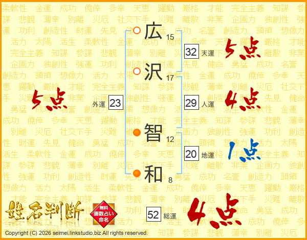 広沢智和さんの総運は52画の4点!