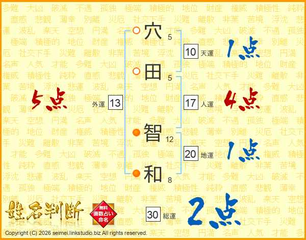 穴田智和さんの人運は17画の4点!