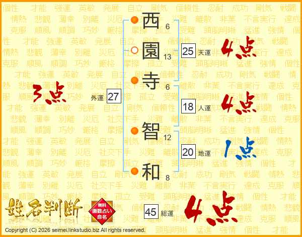 西園寺智和さんの総運は45画の4点!