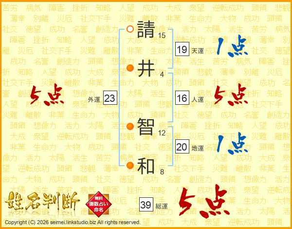 請井智和さんの総運は39画の5点!