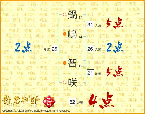 鍋嶋智咲さんの外運は26画の2点!