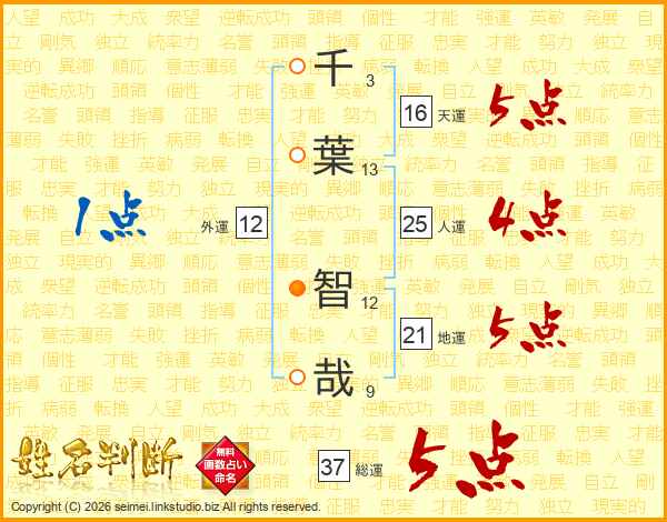 千葉智哉さんの総運は37画の5点!