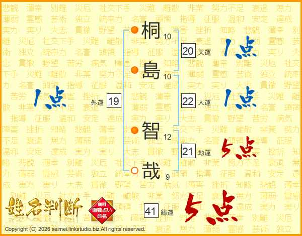 桐島智哉さんの総運は41画の5点!