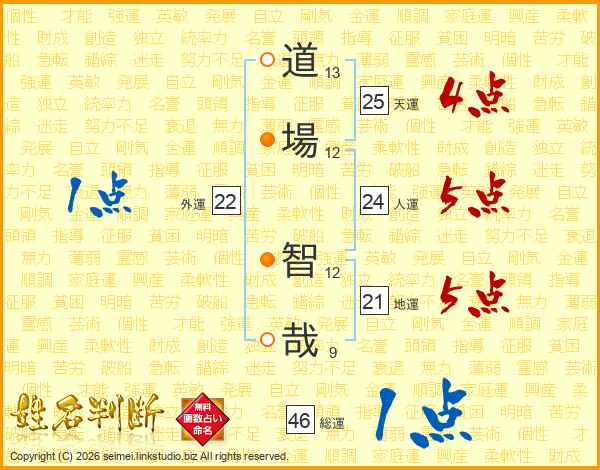 道場智哉さんの天運は25画の4点!