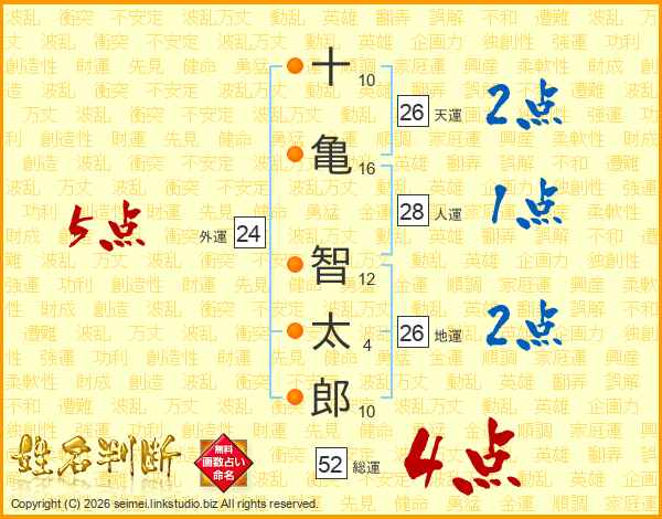 十亀智太郎さんの総運は52画の4点!