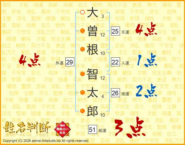 大曽根智太郎さんの天運は25画の4点!