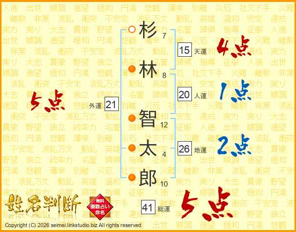 杉林智太郎さんの地運は26画の2点!