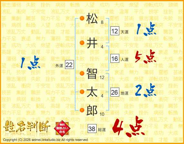 松井智太郎さんの総運は38画の4点!