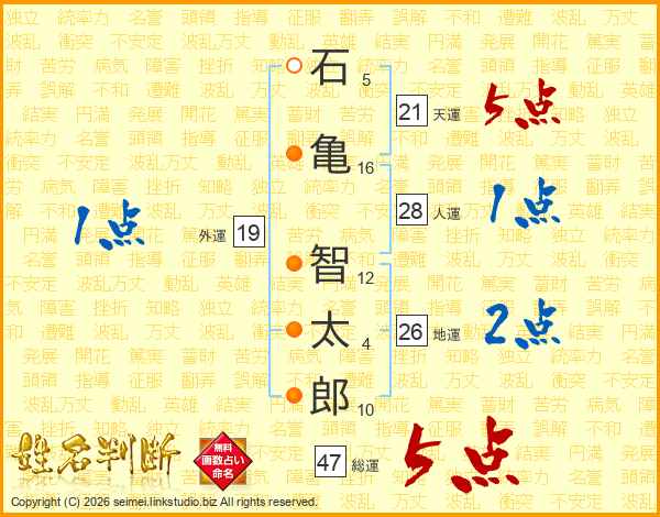 石亀智太郎さんの総運は47画の5点!