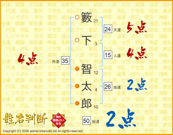 籔下智太郎さんの天運は24画の5点!