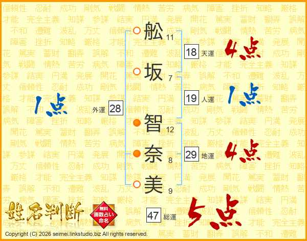 舩坂智奈美さんの総運は47画の5点!