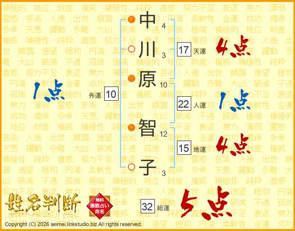 中川原智子さんの総運は32画の5点!