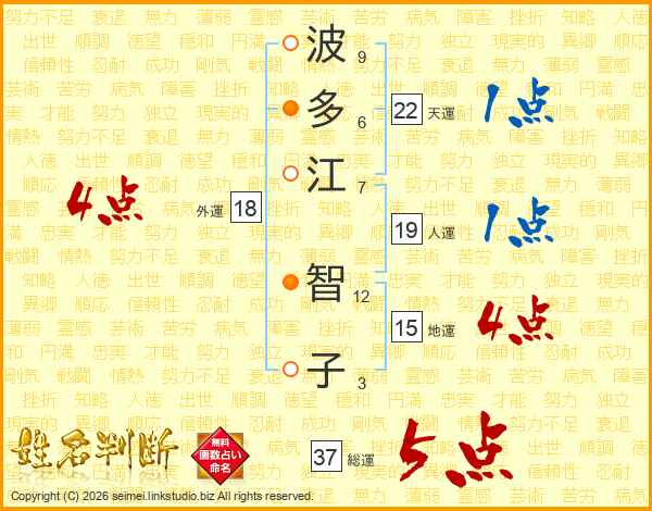 波(9画)多(6画)江(7画) 智(12画)子(3画)