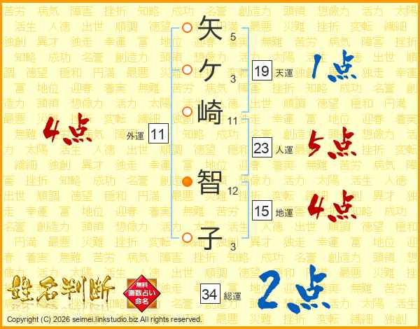 矢(5画)ケ(3画)崎(11画) 智(12画)子(3画)