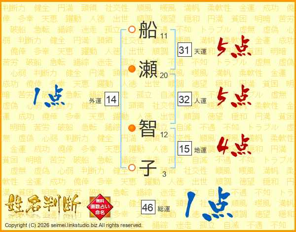 船瀬智子さんの総運は46画の1点!