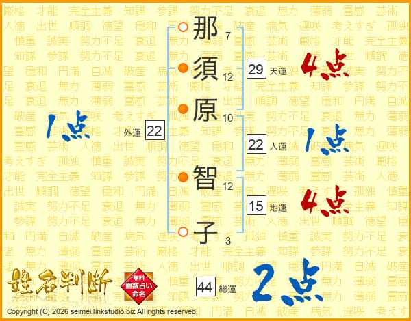 那須原智子さんの総運は44画の2点!