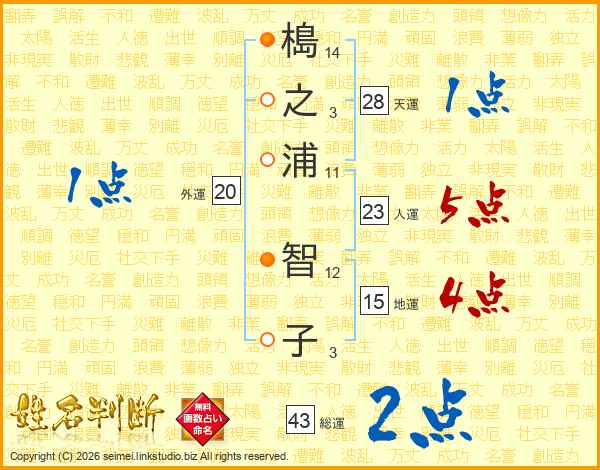 槝之浦智子さんの総運は43画の2点!