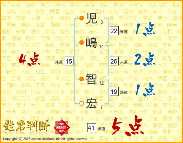 児嶋智宏さんの総運は41画の5点!
